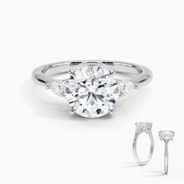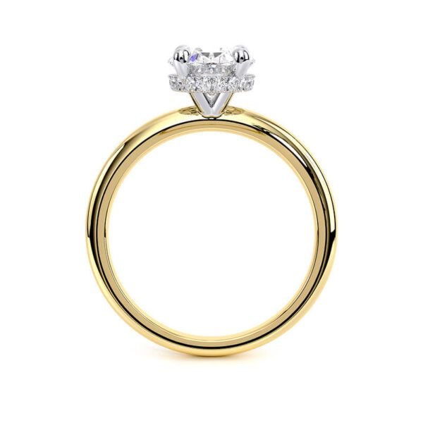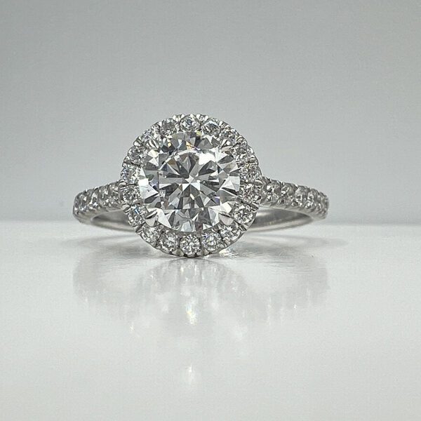 Round Engagement Ring with Halo and Half Pavé Band 18K White Gold