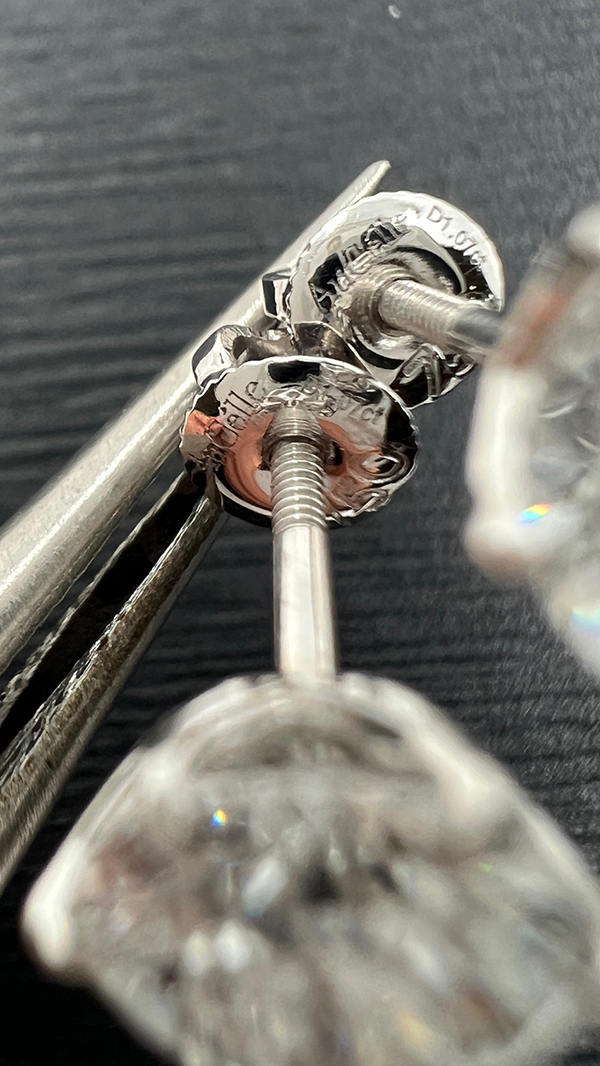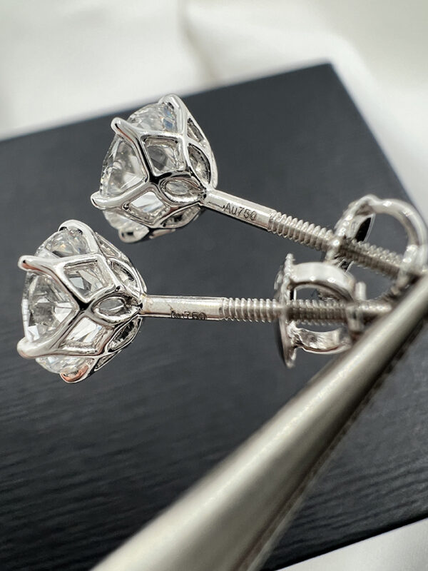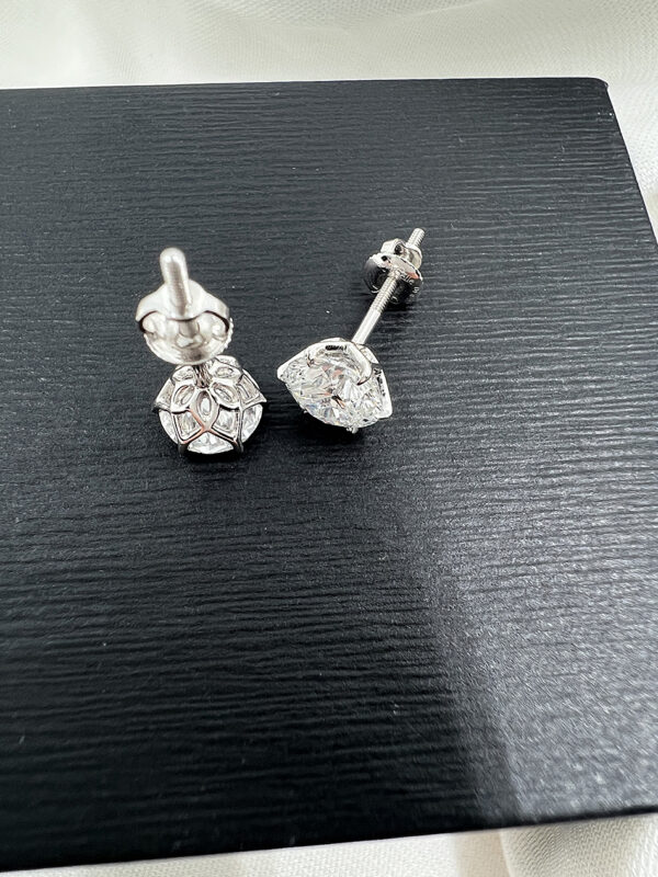 - Total Carat Weight: 2.14 TCW (1.07 ct per earring)