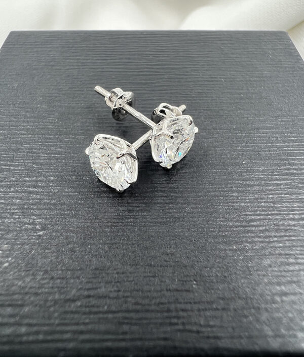 Round Lab Diamond Stud Earrings – 2.14 TCW in White Gold