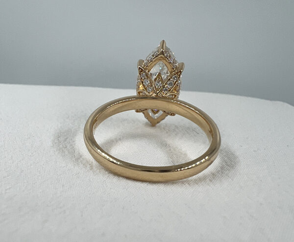 Marquise Engagement Ring Gold with Halo & Tulip Basket