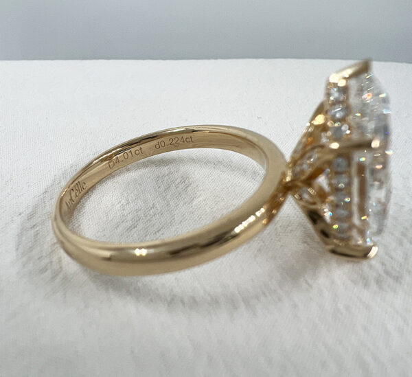 - Accent Stones: Diamonds on halo and tulip basket totaling 0.224 ct