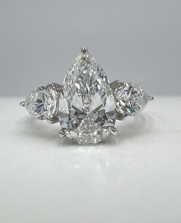 - Side Diamonds: 1.012 CT Total, Pear Cut, D color, VS1 clarity